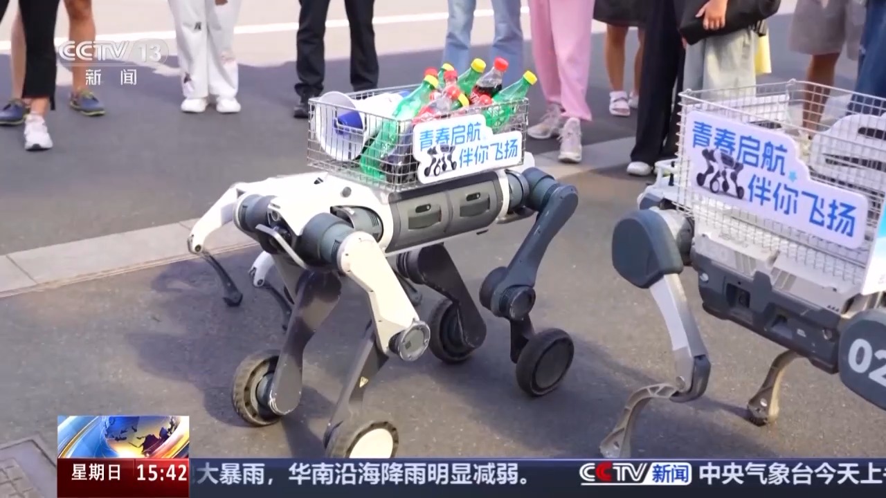 这支由浙大师生团队研发的机器狗组成的智能迎新小队,是今年迎新现场的特殊“志愿者”。它们不仅会跳舞卖萌,还能灵活地穿梭于人群之中,帮助运送饮品和各类物资。别看它们个头小,背起大件行李可一点也不含糊,能够在楼梯等复杂地形中稳健负重、快速前行,成为迎新服务中妥妥的“智能担当”。